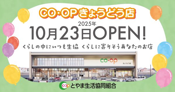 2025年10月23日、とやま生協で初めての大型店舗「CO・OPきょうどう店」が、富山市経堂にグランドオープン!