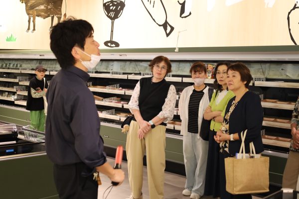 店内を巡りながら、スタッフが各コーナーの特長やこだわりを熱心に紹介しました。参加者からは「すごいね~」「へぇ~!」と感心の声があがり、スタッフの説明にうなずきながら聴き入る姿も見られました。質問も次々に寄せられ、にぎやかな雰囲気の見学になりました。