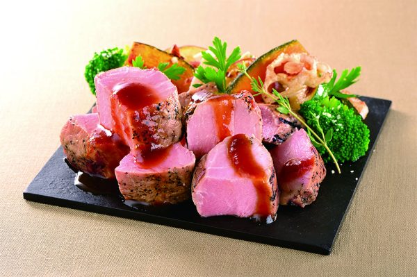 豚ヒレ肉を低温でじっくり加熱したローストポーク。コープ北陸で行われた迎春試食学習会では、人気No1を獲得!しっとりやわらかいお肉に驚くこと間違いなし!