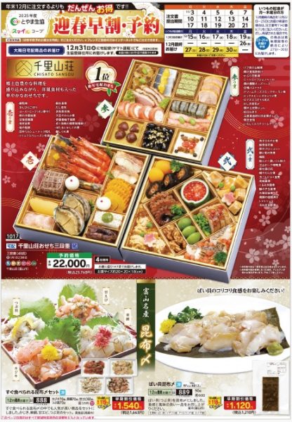 とやま生協オリジナルの迎春商品カタログ。県内の生産者・企業のおすすめ商品も多数取り扱っています。