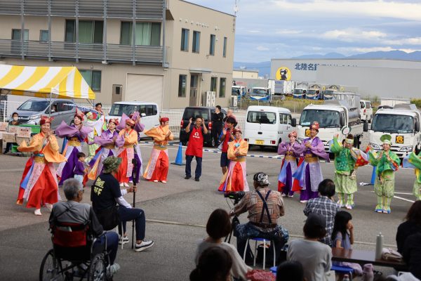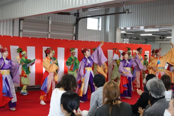 フィナーレでは、再び登場した2チームによるよさこい踊りが会場を魅了しました。指先まで感情のこもった力強い演舞に、観客の視線は釘付け。職員も踊りの輪に加わり、会場全体が一体となって盛り上がりました。