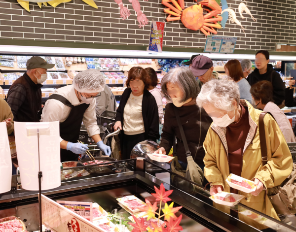 オープニングセレモニーのあとは、CO・OPきょうどう店周辺の地域の皆様を招待し、プレオープンとしてお買い物を楽しんでいただきました。