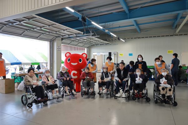 とやま生協の福祉施設「輝くろべ」の利用者さんたちにも、せいきょうまつりに遊びに来ていただきました。コーすけと一緒に記念撮影をしたり、お菓子の詰め放題に挑戦したりと、みなさんお祭りの雰囲気を楽しまれました。