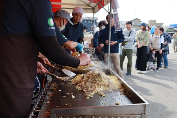 お昼時にはフードコーナーが賑わい、生協職員の「あったか食堂」では焼きそばの屋台に行列ができるほどでした!ほかにもクレープやフランクフルトなどをご提供し、来場者のみなさんは思い思いのフードを手に、家族でシェアしながら食事のひとときを過ごされていました。
