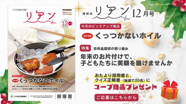 とやま生協の商品や取り組み、くらしに役立つ情報が詰まった『機関誌リアン』12月号を発行しました!