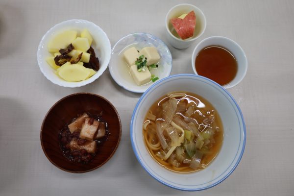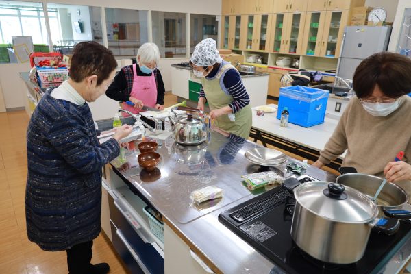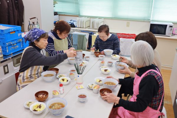 - おいしくいただきました。持ち寄りで何が作れるのか不安でしたが、煮込みうどん、ぜんざい、高野豆腐など、どれもおいしかったです。
