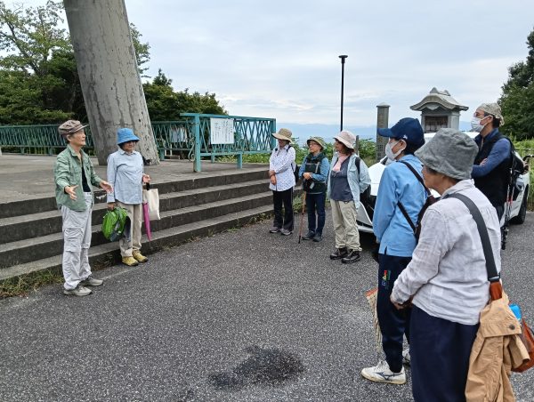 二上山万葉ライン途中の平和の鐘がある駐車場に集合し、クラブの代表者からご挨拶とナチュラリストの森さんをご紹介しました。