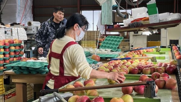 加工・選果場ではりんごジュースやジャムの製造のほか、りんごの集荷、選別作業などおこなっています。りんごは糖度センサーを通って重さや大きさで自動選別され、その後パッキング作業がおこなわれます。糖度不足のりんごは自動で弾かれ加工用になるそう。丁寧に説明していただきながら、一連の作業を見学できました。