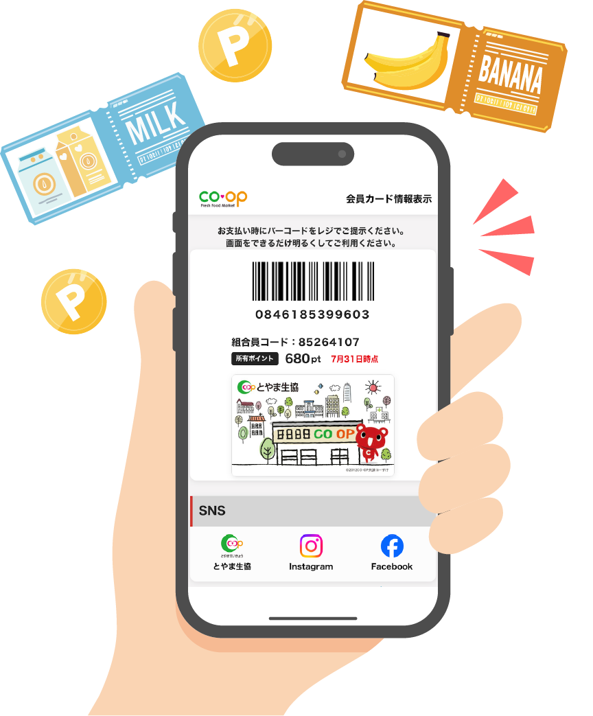お会計時に店舗カードまたは店舗アプリをご提示ください。