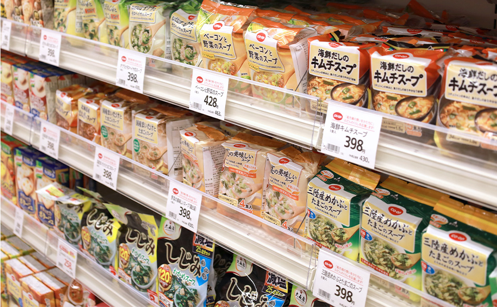 店内にフードドライブを常設。ご家庭で眠っている食品をお持ちいただき、いつでも食品ロス削減の取り組みに参加できます。